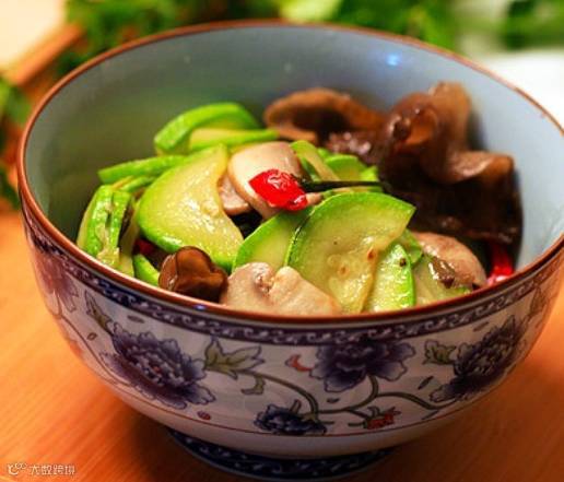2、泡发后的台蘑和黑木耳略挤干水分,番瓜切片备用;