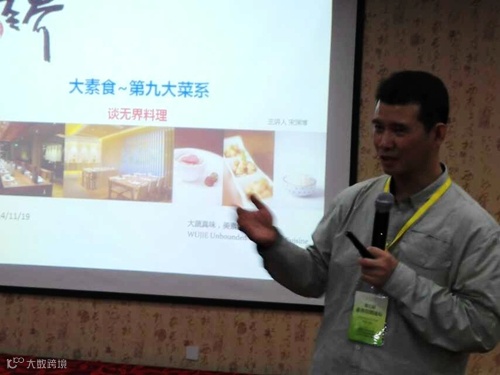 19日下午,由上海枣子树、上海大蔬无界创建人宋渊博主讲“高端素食菜品的策划、设计与制作”,以大蔬无界为例,分享宋氏秘诀“第九大菜系·无界料理”。