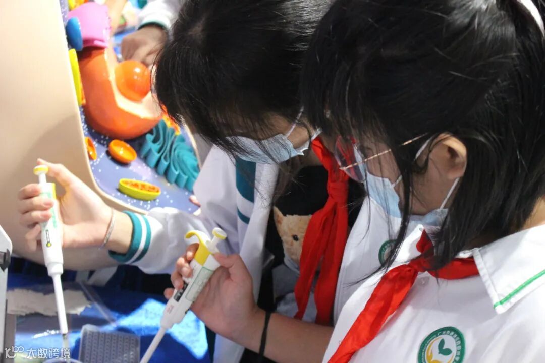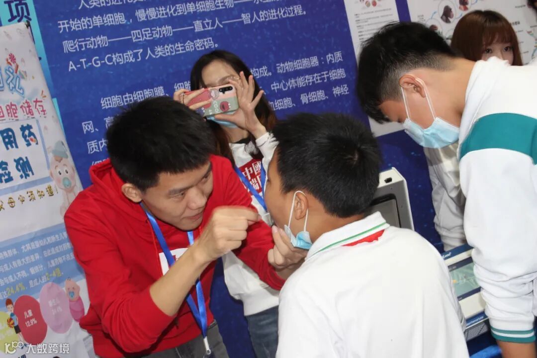 瑞因人为近百个学生们进行口腔拭子采样,科普儿童安全用药的重要性,并为每位体验的学生们发放检测报告。