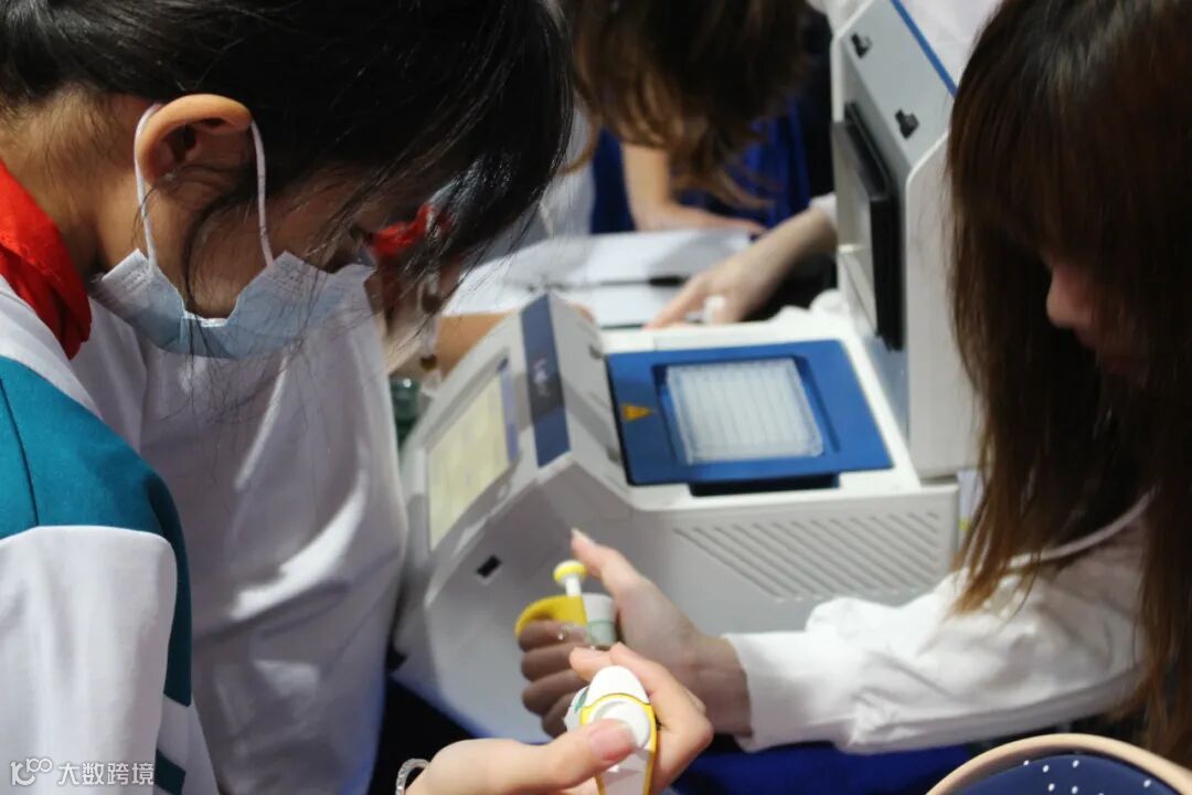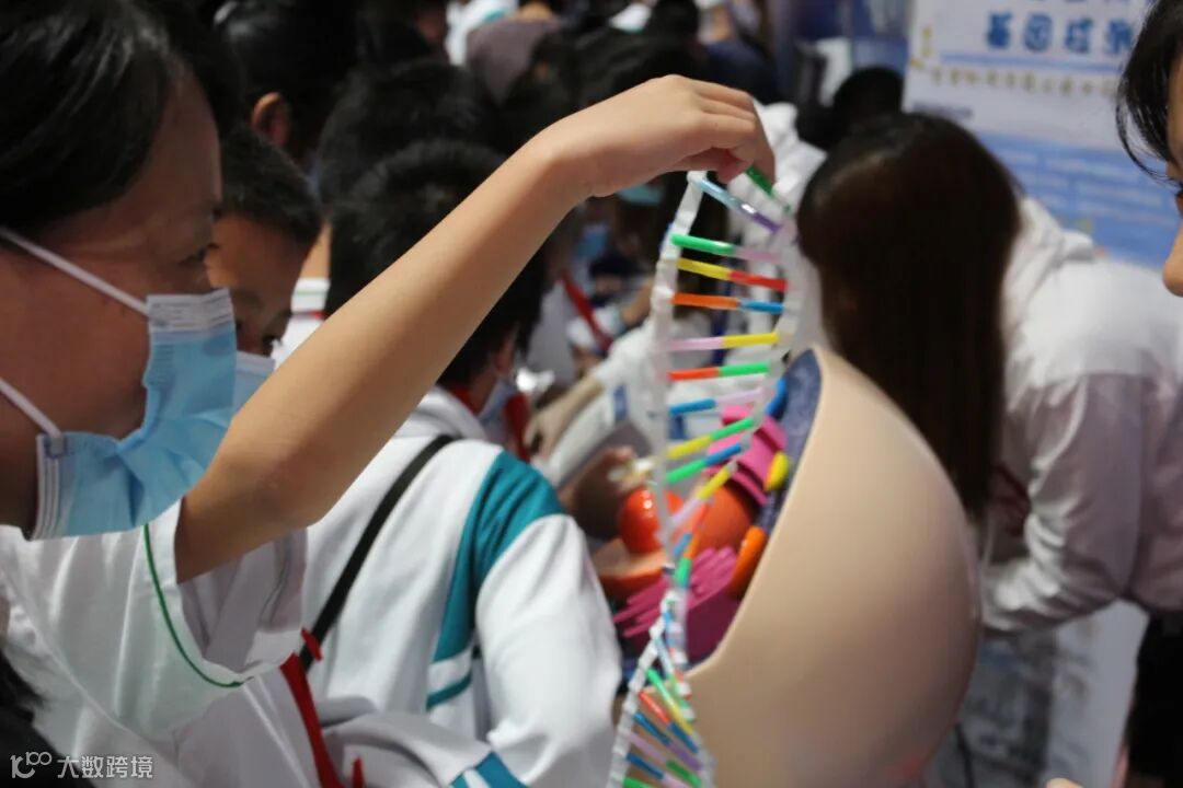 学生们在瑞因人的引导下,进行碱基互补配对,组成DNA链条。让学生们更近距离的接触科学。