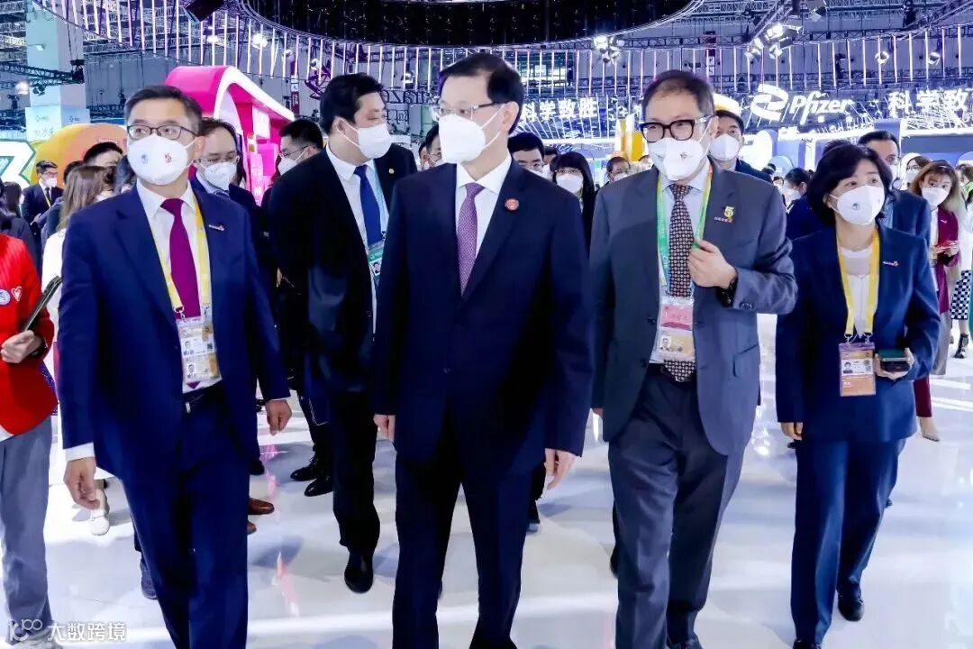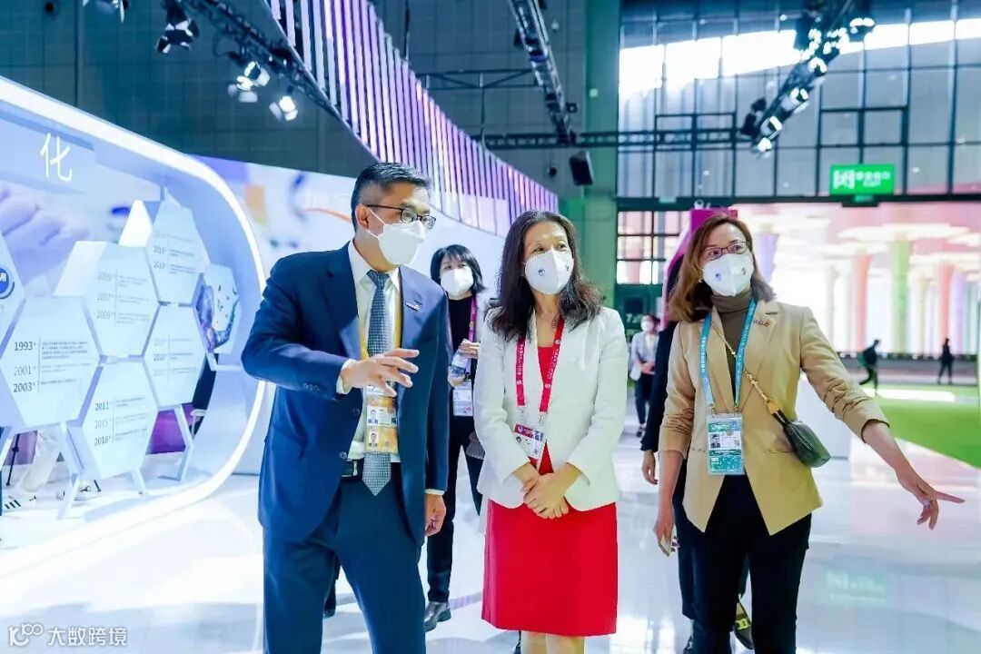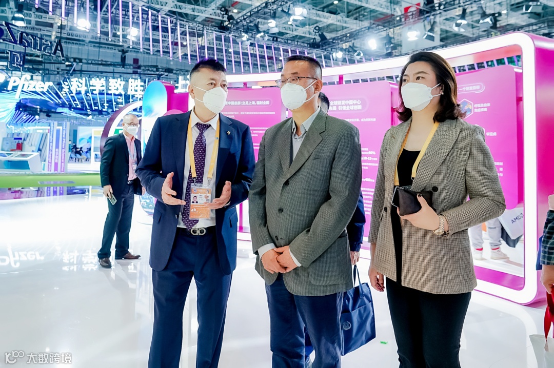 上海市委副秘书长、市纪委副书记马乐声参观阿斯利康展台