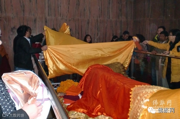 印度拘尸那加·团友于佛陀涅槃像供养袈裟