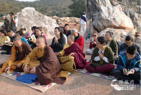 印度·灵鹫山佛陀讲经台前共修《心经》