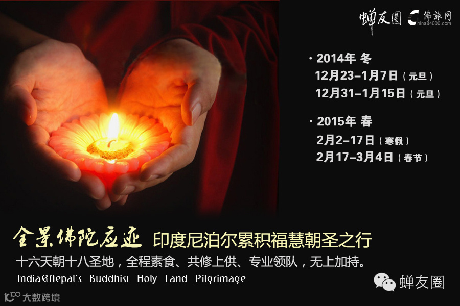 蝉友圈·佛旅网于12月25-28日,组织峨眉山、乐山朝圣游学,行程四天三夜,蝉友圈CEO领队。于清幽圣境,欣赏峨眉恢弘风光,金顶赏雪;朝礼普贤道场诸大禅院庙宇,深入体验丛林文化及清净行修;三步一拜(自愿)登金顶朝礼十面普贤菩萨,累积福慧,学习普贤大行之精神。详细4006-626-676。