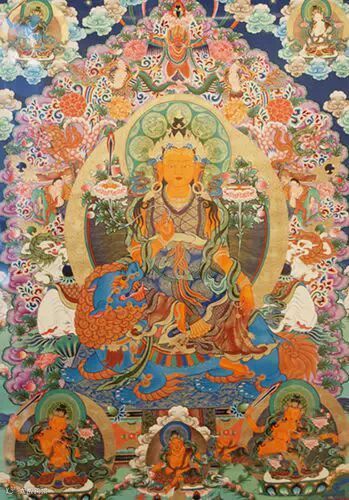 文殊菩萨,即文殊师利或曼殊室利,佛教四大菩萨之一,释迦牟尼佛的左胁侍菩萨,代表聪明智慧。因德才超群,居菩萨之首,故称法王子。文殊菩萨的名字意译为“妙吉祥”,文殊或曼殊,意为美妙、雅致、可爱,师利或室利,意为吉祥、美观、庄严,是除观世音菩萨外最受尊崇的大菩萨。文殊菩萨在道教中称文殊广法天尊。