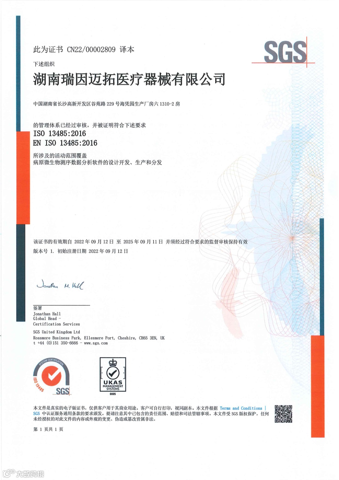 湖南瑞因迈拓医疗器械有限公司顺利通过ISO13485管理体系审核。