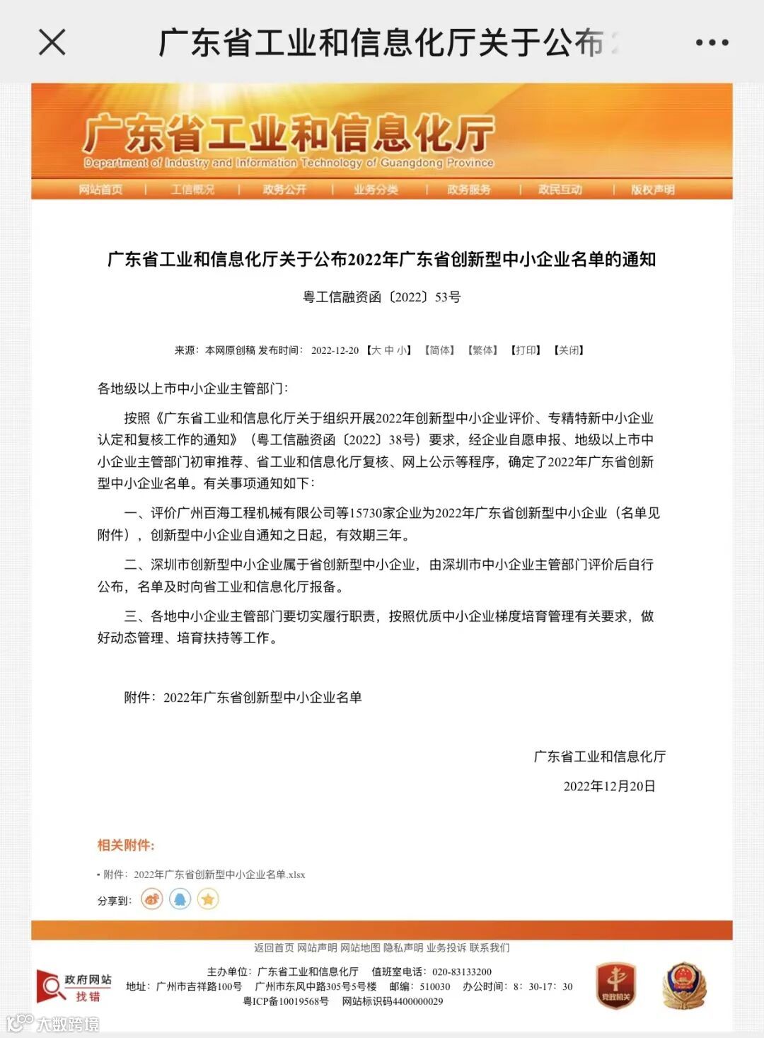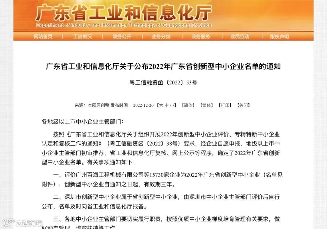 经广东省工业和信息化厅发布,根据《广东省工业和信息化厅关于公布2022年广东省创新型中小企业名单的通知》,瑞因生物科技(广州)有限公司、瑞因细胞工程科技(广州)有限公司、瑞因迈拓科技(广州)有限公司,经企业自评、地市初审、省工信厅复核、网上公示等程序,顺利通过2022年创新型中小企业认定。