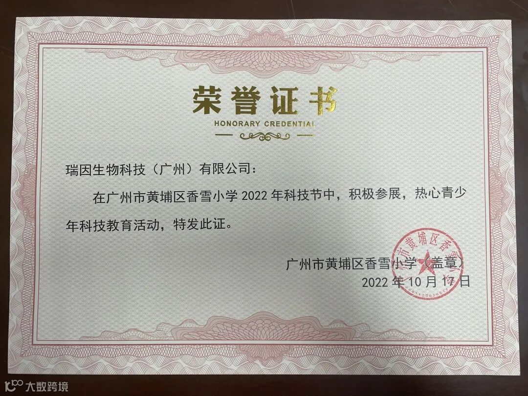 瑞因生物在做好技术创新、科学研发的同时,发挥自身优势和专长,积极承担和履行科普社会责任,瑞因生物科普志愿者团队走进黄埔区香雪小学、天景小学,做基因、细胞、微生物科普知识分享,带孩子们探索微生物世界,解锁基因科技密码,在科普推广工作上贡献瑞因力量,获黄埔区科协授予“黄埔科普活力圈新时代科普实践基地”荣誉。