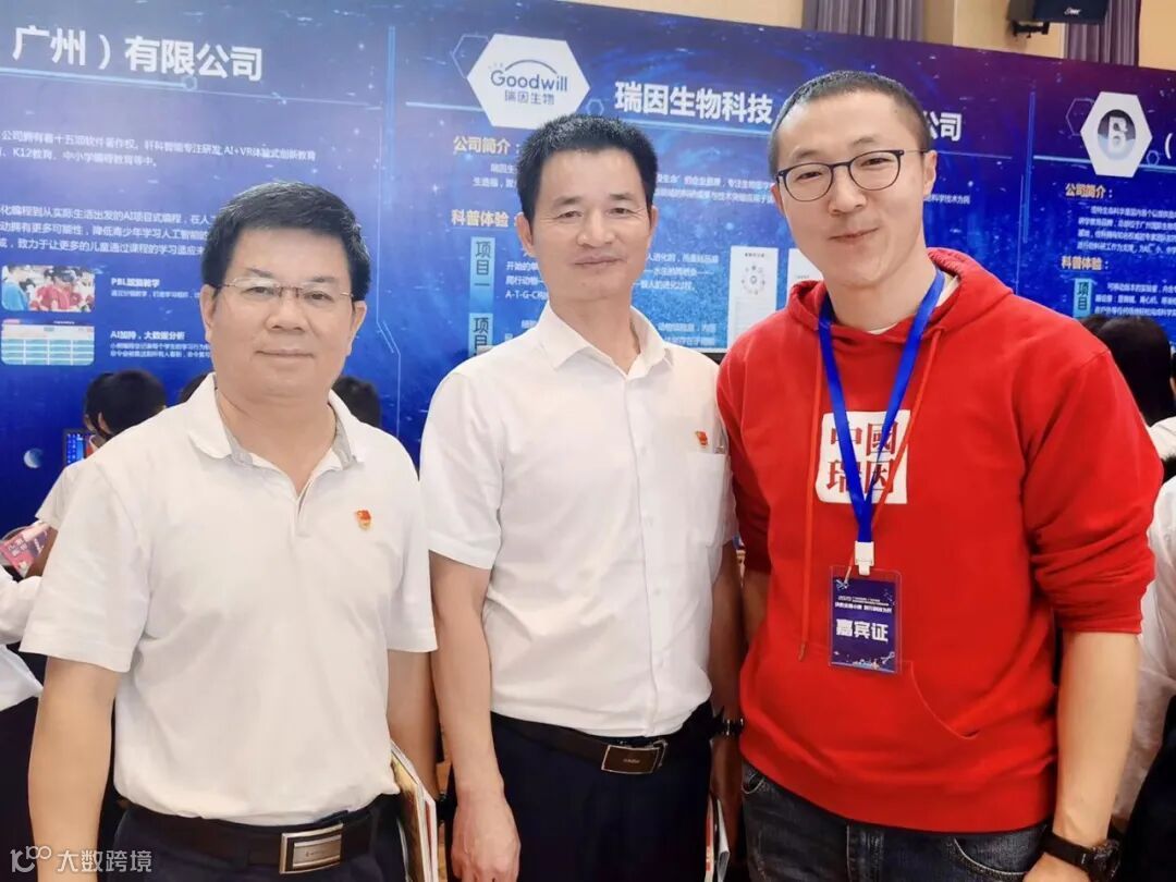 ↑区科协党组书记、主席张景铭,市科协科普部部长黄增豪,瑞因生物CEO