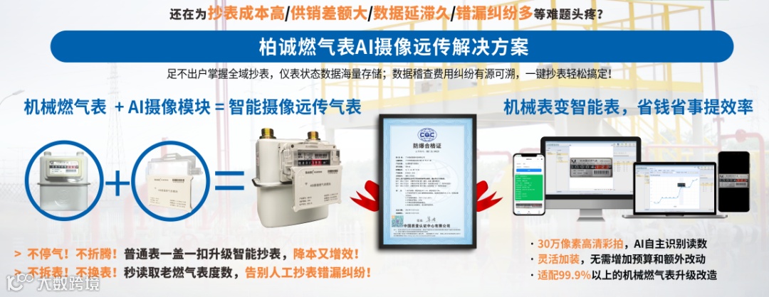面对市场上不同规格的机械燃气表,柏诚智能采用灵活定制化的固定底座+AI摄像的组合安装方式,100%适配市面上的机械燃气表,助力燃气行业智能化升级!!