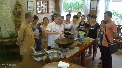 2014年6月15日到22日在广州举行的食疗养生师暨素食厨艺研修圆满结束!来自全国各地的素食馆的老总们、厨师以及从事养生及美容等行业的领导,学习用心,共同精进。特别有用了一年时间筹备特意从国外回来学习的锦辉学员,他放下手上的所有生意及工作,全程认真刻苦,这种精神让大家都很赞叹!还有从马来西亚来提前几天到达中国适应环境的伟欣与嘉雯同学,更难得的是,这期的培训班还有一位来自山东古寺的法师参与学习,所有的学员对这个既是同学又是法师的师父既谦恭又礼敬。
