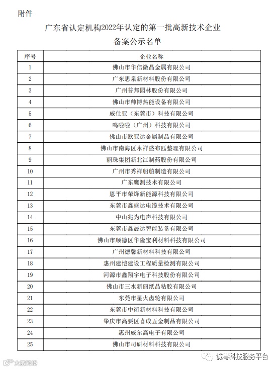 根据《高新技术企业认定管理办法》(国科发火〔2016〕32号)和《高新技术企业认定管理工作指引》(国科发火〔2016〕195号)有关规定,现将广东省认定机构2022年认定的第一批5249家高新技术企业(企业名单详见附件)进行备案公示,公示期为10个工作日。