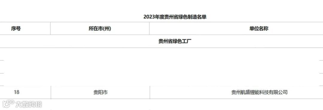 2024年1月1日,贵州省工业和信息化厅公示了“2023年度绿色制造名单”,凭借绿色生产整体布局,贵州航盛锂能科技有限公司上榜“绿色工厂”名单。