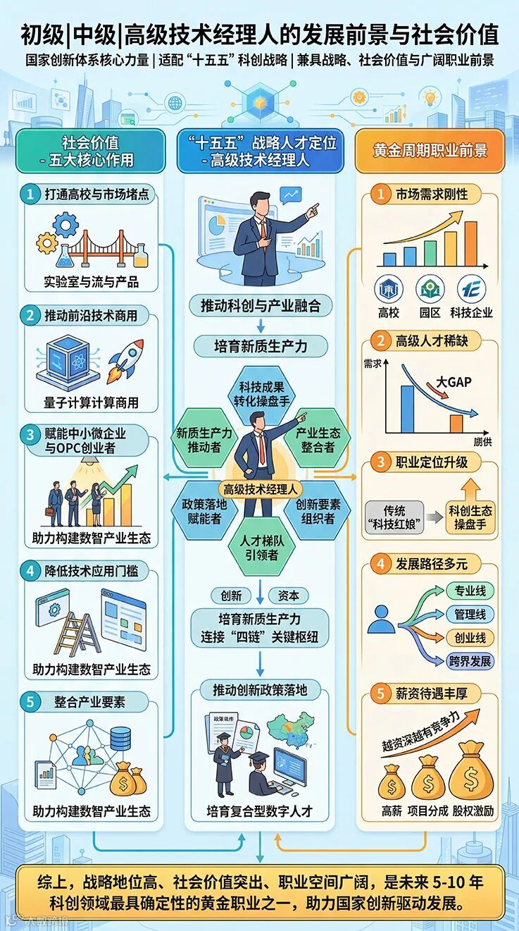 为响应国家号召,贯彻创新驱动发展战略,提升科技成果转化效率,推动人工智能赋能实体经济,规范技术转移人才培养,助力从业者掌握核心技能、抢占行业先机,我们特推出2026首届技术经理人初级培训活动,以“技术经理人队伍建设”为抓手,形成“人才培养—项目对接—技术转移—企业落地—产业集聚”的服务闭环。