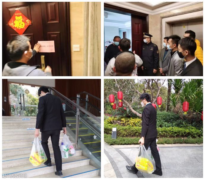 ▲最苦口婆心的疫区返程人员居家隔离劝导工作:物业人员配合社区一遍遍苦口婆心劝导疫情返程人员居家隔离,并贴心地为业主提供外卖、快递送上门服务。