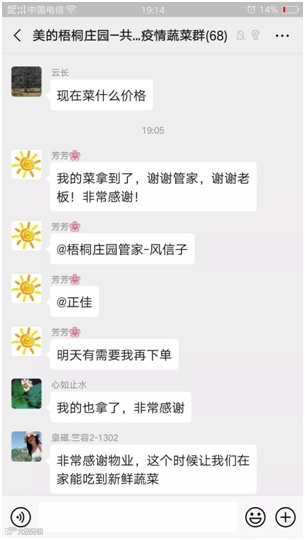 株洲美的梧桐庄园疫情蔬菜群内,业主收到管家送上门的新鲜蔬菜,连连表示:“非常感谢物业,这个时候让我们在家能吃到新鲜蔬菜” “真的感觉到美的物业的温暖了!”美的物业协调社区资源,开通“蔬菜直通车”,这个冬天,愿你有菜有酒有故事。