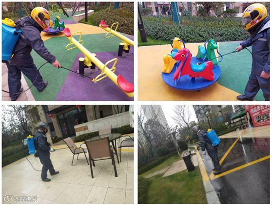 ▲最硬核的公区消毒作业:楼道、电梯、地下室等室内公共区域每天消毒2次;垃圾桶周边、门岗、游乐设施等重点区域每天消毒3次;单元门把手及电梯内控制按板每日进行消毒4次,不放过任何一个缝隙和细节!