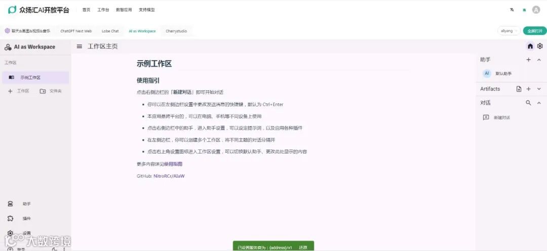 4)Ai as Workspace: https://aiaw.app/ AI as Workspace(AIaW) 是一款开源的跨平台AI客户端,旨在提供全功能、轻量级的智能工作空间,支持多模型管理、插件扩展及私有化部署。
