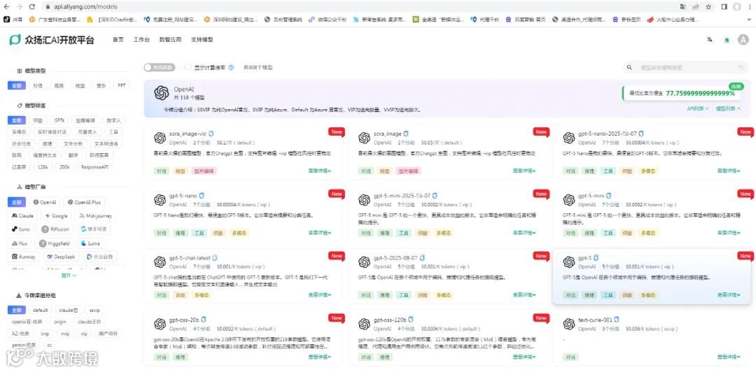 还在为高昂的GPU成本发愁?众扬汇AI(https://api.allyang.com)聚合国内外顶尖大模型,推出“零硬件门槛+按需付费”模式,让企业/个人轻松调用AI能力,专注业务创新!