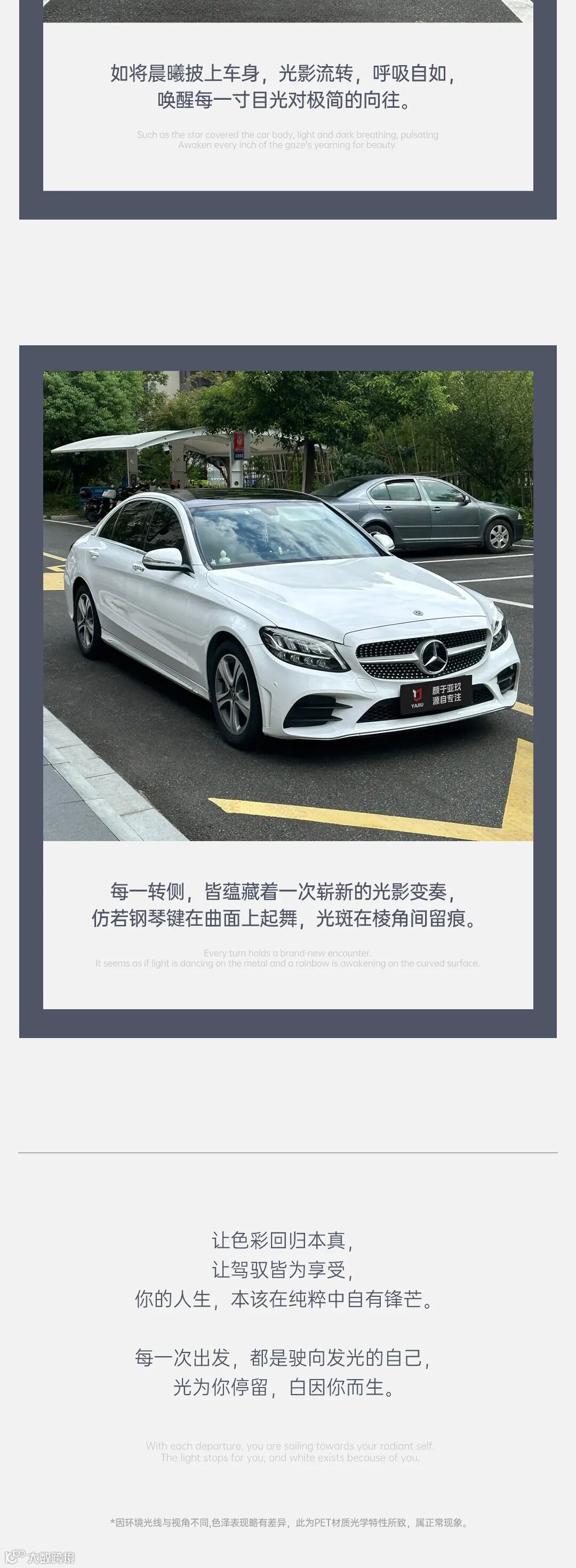 广州亚玖复合材料有限公司是集研发、生产、销售为一体的专业生产复合材料的生产型企业。本公司的汽车贴膜系列产品已达到国际最先进生产水平、现拥有汽车改色膜、3D碳纤膜、犀牛皮、车顶(天窗)膜、汽车电镀膜、车灯改色膜、变色膜、冰膜、珠光膜、喷膜。