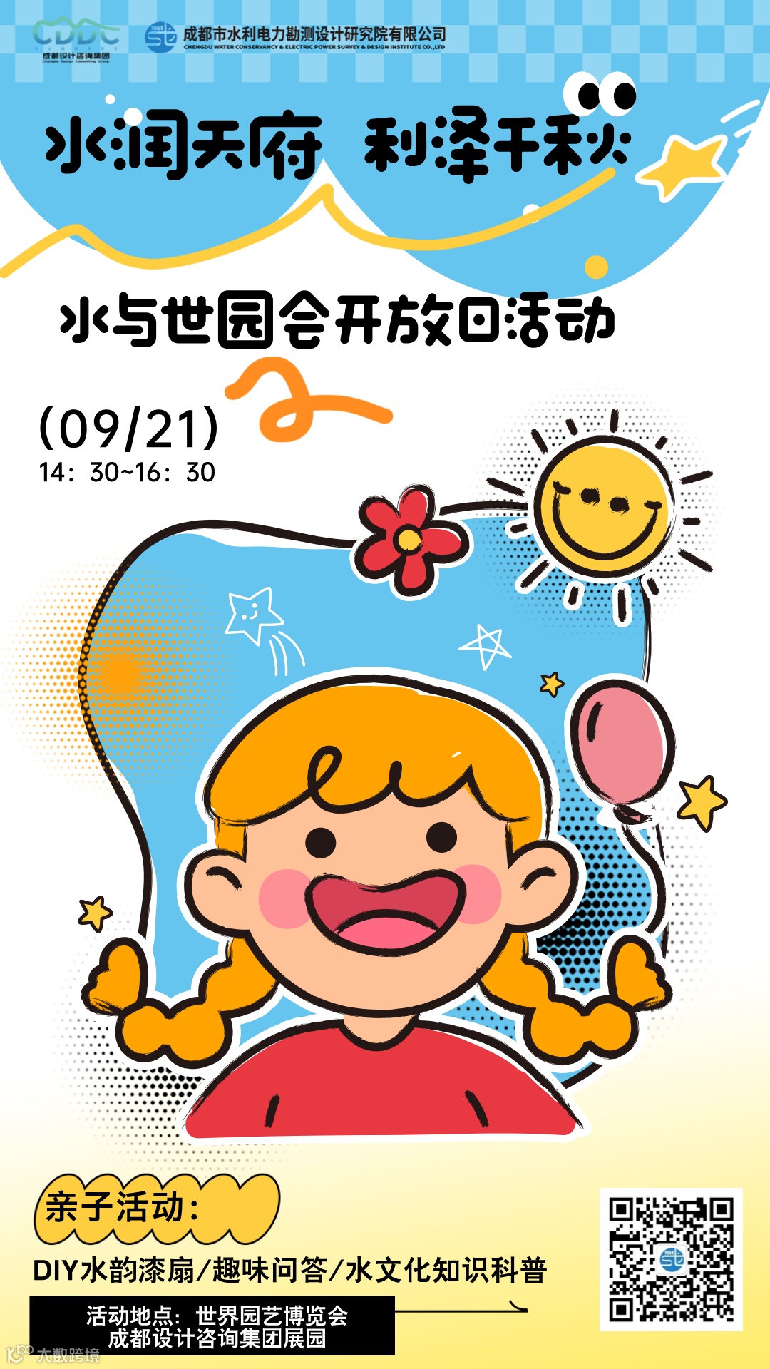 我们诚挚地邀请您和您的家人参加我们即将举办的“水润天府,利泽千秋”水与世园会开放日活动,感知世园会活动背后的水利专业支撑,共同探索成都公园城市建设中的水文化奥秘,体验世园会的群众性、广泛性和丰富性。
