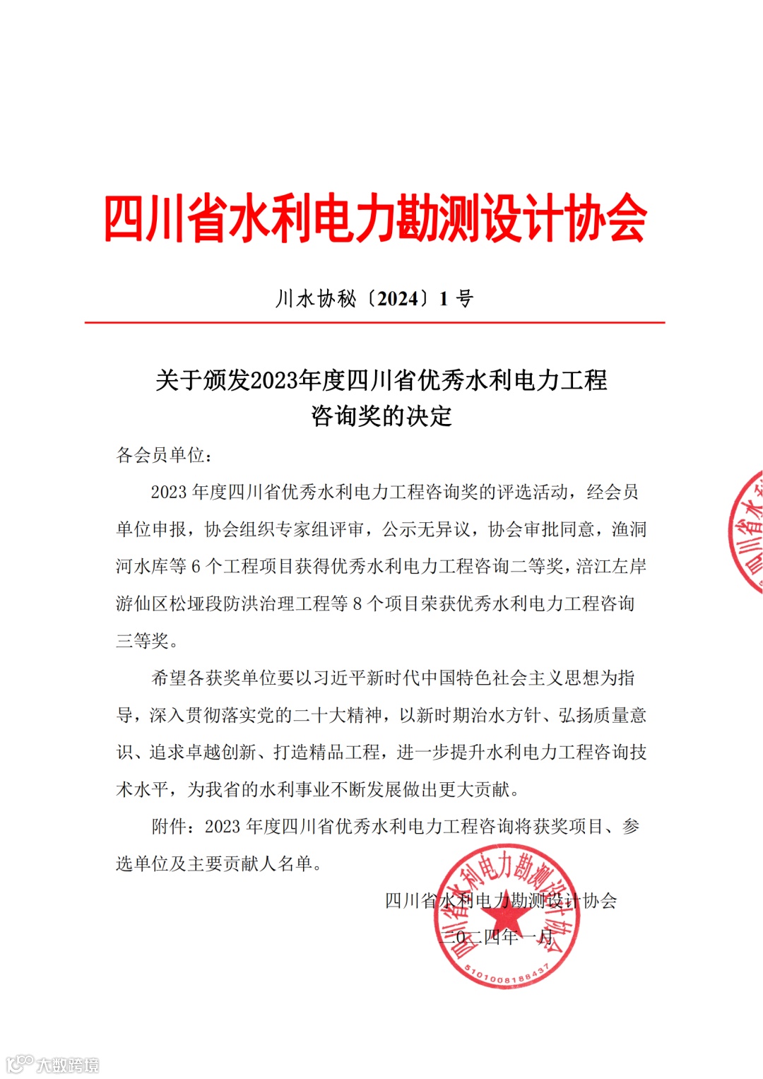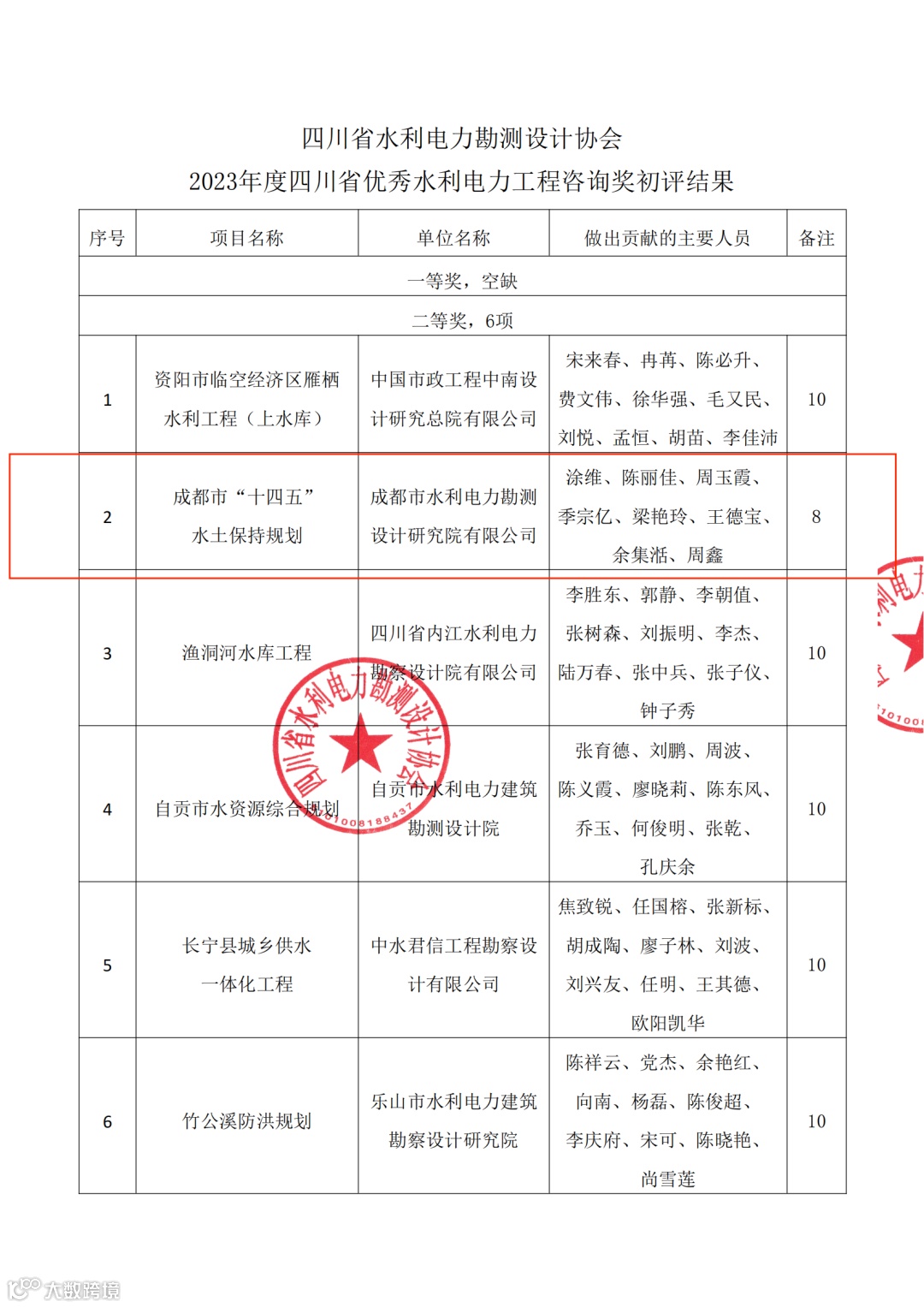 近日,四川省水利电力勘测设计协会公布了2023年度四川省优秀水利电力工程咨询奖结果,成都设计咨询集团·市水利院《成都市“十四五”水土保持规划》荣获二等奖,《南河三江片区蒲江河蒲江县寿安街道至邛崃回龙社区段防洪专项规划》荣获三等奖。这一殊荣不仅是对团队辛勤工作的肯定,更是对团队专业能力和设计质量的认可。