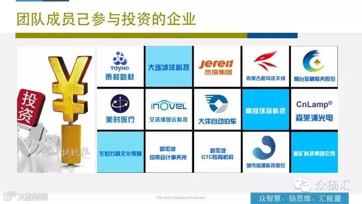 众扬汇的创始团队都是具备深厚行业背景与实践经验的专业人士,在经济趋势分析、金融行业研究、财税法、资本运作、企业战略策划、塑造品牌价值、投资管理等方面有着强大的专业能力与辐射能力。我们秉承“真实、简单、高效”的价值观,融合了学术机构、创投机构、私募基金、法律、会计、投行等国内外顶级资源,为企业塑造品牌价值、财税法咨询、股权价值管理、上市孵化、基金投资等服务模块,塑造可持续发展的高效成长团队,让企业主动符合上市标准,直接获取资本能量。
