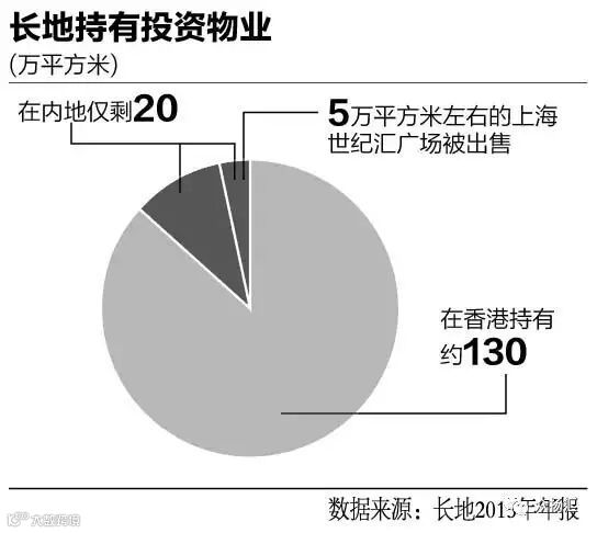 长地持有的内地投资物业已经不多了。长地2015 年年报显示,该公司目前持有约150 万平方米的投资物业。其中,在香港持有约130 万平方米,而在内地仅剩20 万平方米。