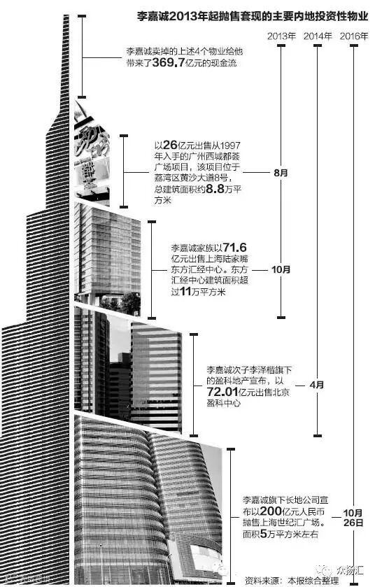 李嘉诚卖掉的上述4 个物业给他带来了369.7 亿元的现金流。