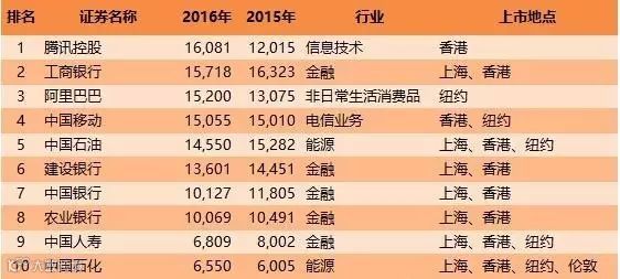 值得一提的是,腾讯公司在2016年里的增速相当强劲,同比增幅高达33%。排在第二位的是中国工商银行,市值在15718亿元。阿里巴巴紧随其后,市值超出中国移动145亿元排在第三位,但16.75%的增速远远高于后者。