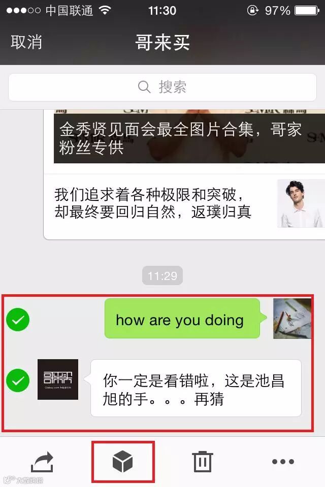 业务上的重要承诺,男女朋友的海誓山盟……美好的东西都怕翻脸不认账。除了截图,还有更好的办法。长按消息选择“更多”,选中多条消息后点击“收藏”,可以保存重要信息。对方要是不小心“忘了”,请善意地在对话中点击“加号”,选择收藏,选取过去的收藏发给好友。证据摆在眼前,你说认账还是不认账?
