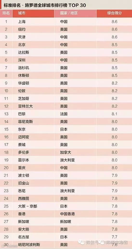 最近在施罗德全球城市排名榜TOP30中,