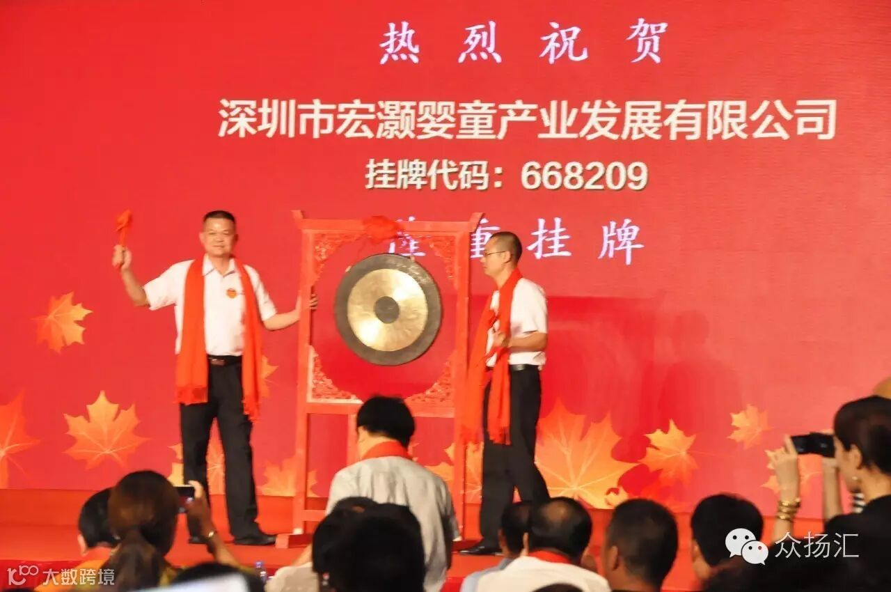 经过众扬汇相关工作人员和深圳市宏灏婴童产业发展有限公司相关负责人2个多月的努力,8月23日,深圳市宏灏婴童产业发展有限公司在深圳市前海股权交易中心成功挂牌。