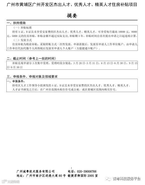 【人才政策】广州市黄埔区广州开发区杰出人才、优秀人才、精英人才住房补贴项目 诚粤科技服务平台