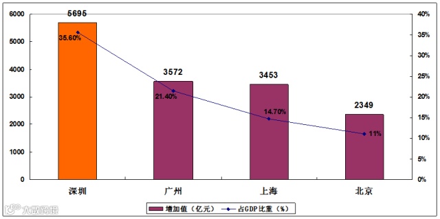 (2014年北上广深战略性新兴产业发展情况。深圳市政府政研室数据)