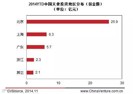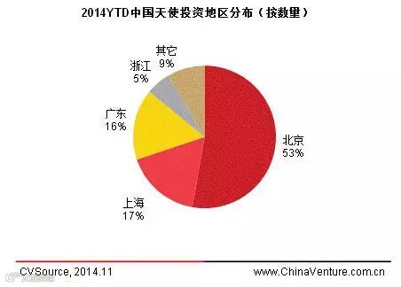 投中集团数据显示,2014年中国天使投资案例数量,北京占比53%,总额为25.9亿元,双双居首;