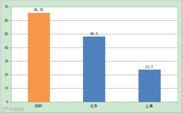深圳:2014年每万人有效发明专利拥有量65.75件,是全国平均水平的13.4倍