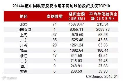 (2014年度中国私募股权投资地区分布TOP10。投中集团数据)