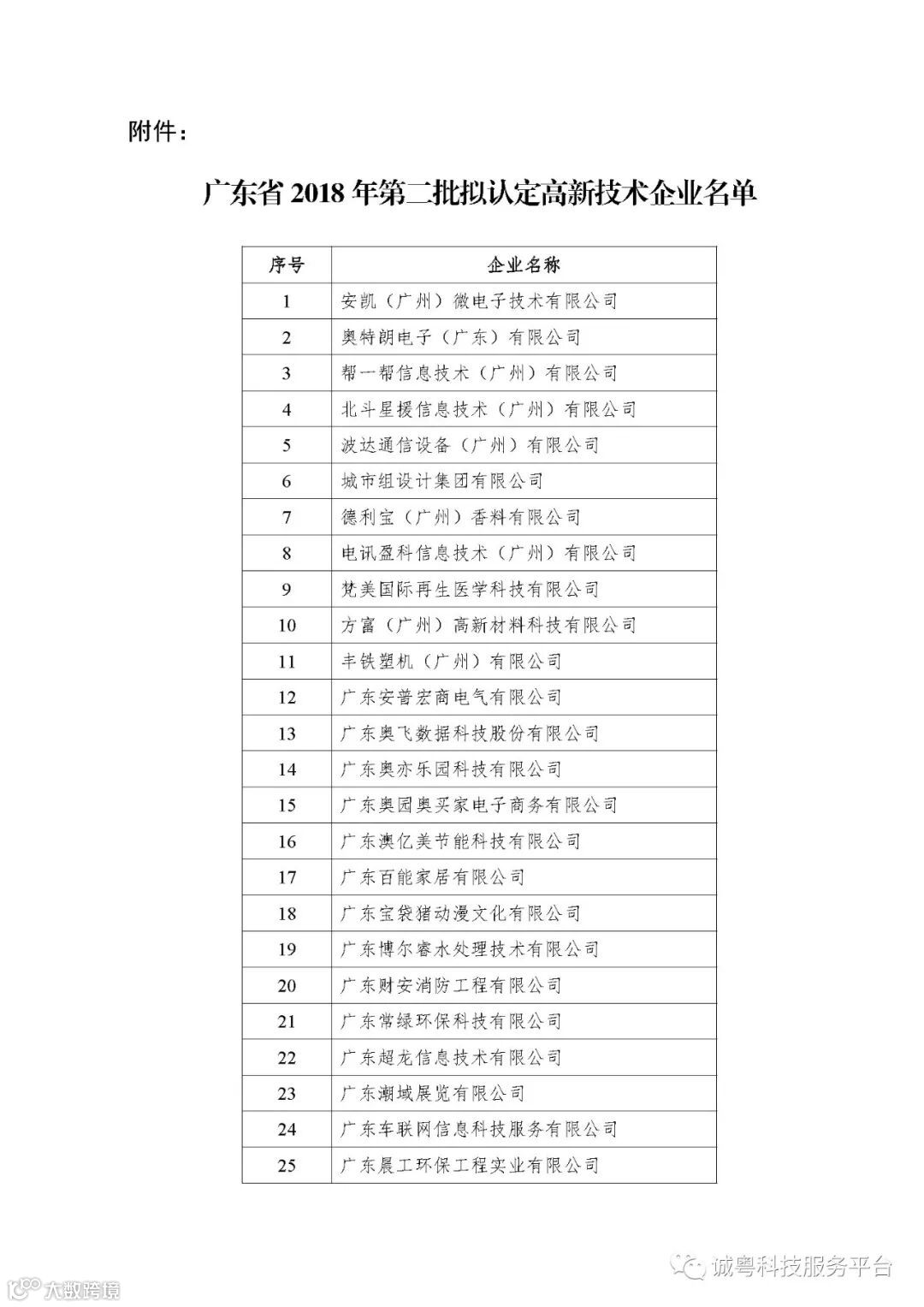 根据《高新技术企业认定管理办法》(国科发火〔2016〕32号)和《高新技术企业认定管理工作指引》(国科发火〔2016〕195号)有关规定,现将广东省2018年第二批5633家企业拟认定高新技术企业名单(详见附件)予以公示,公示期为10个工作日。