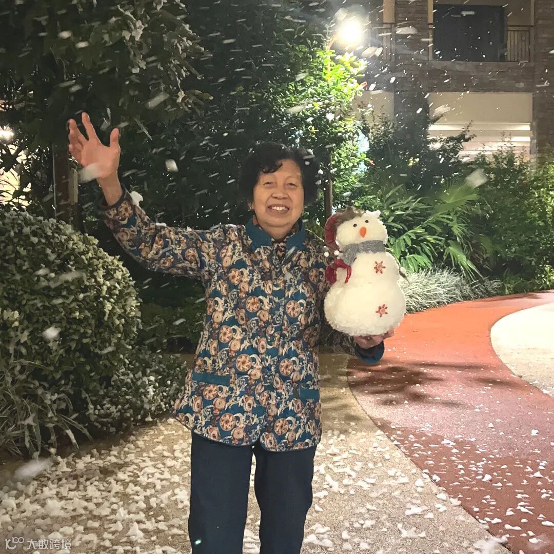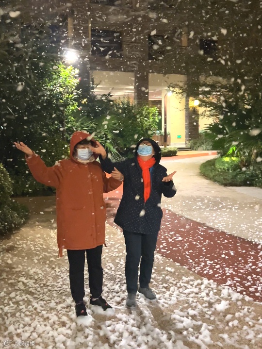 从18号就“安排下雪”啦~可以带着老友打卡雪花飘舞~祝老人圣诞节快乐,这片雪花惹得每个老人都笑的合不拢嘴。