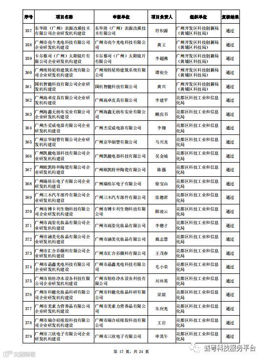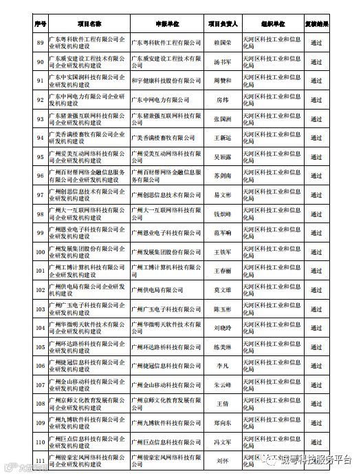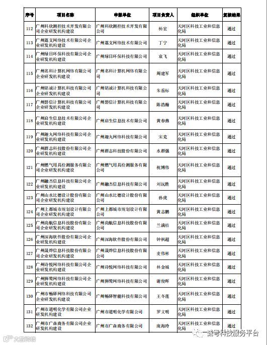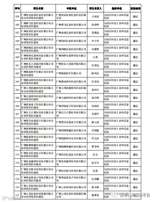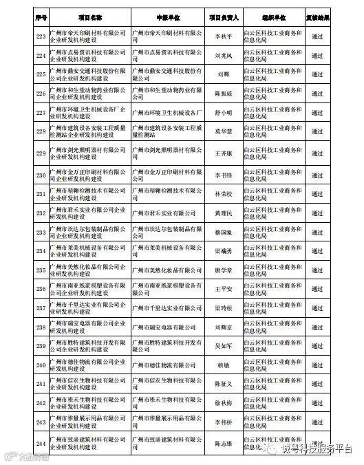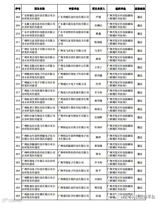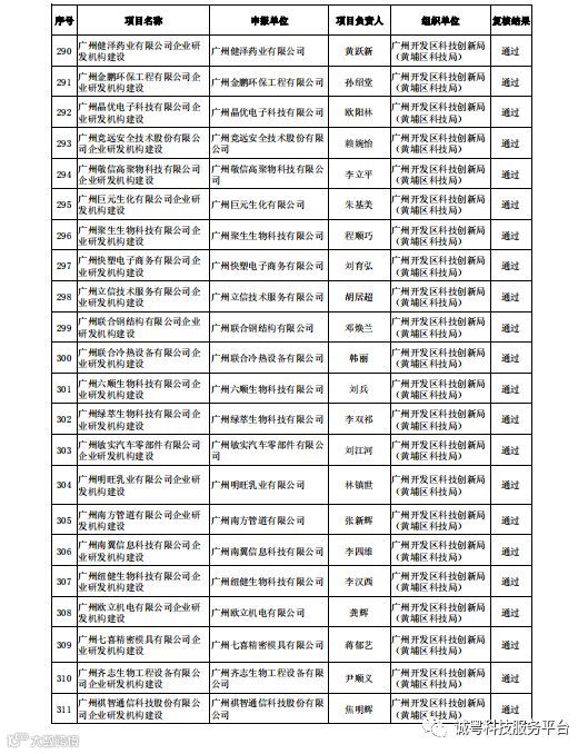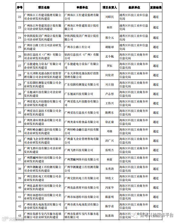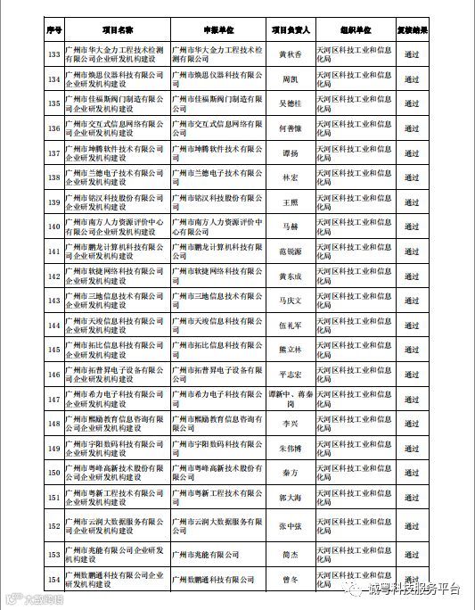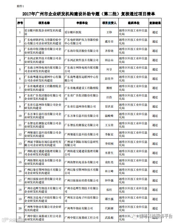 2017年广州市企业研究开发机构建设专题(第二批)项目复核结果公开