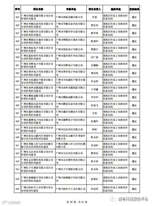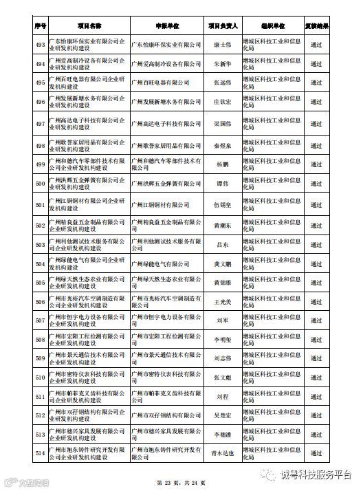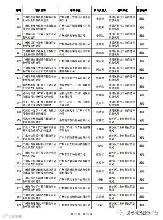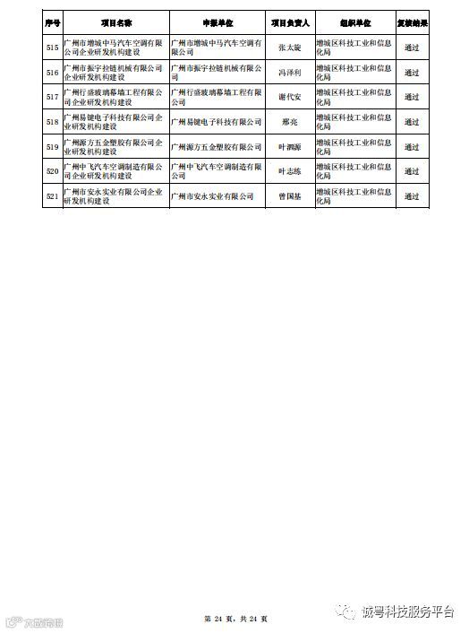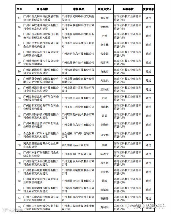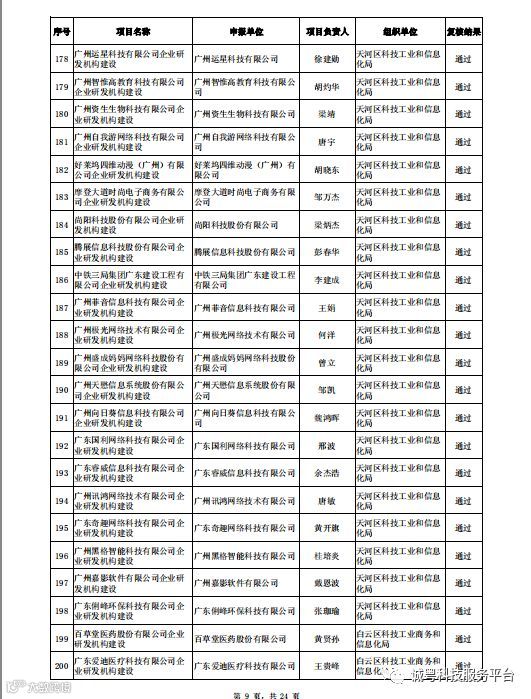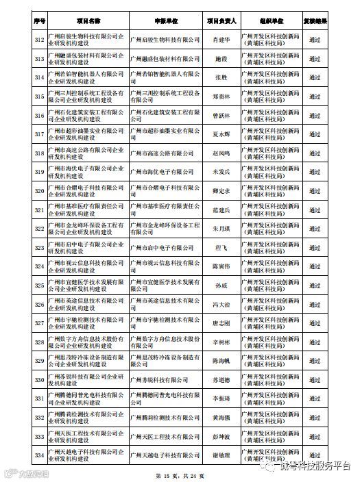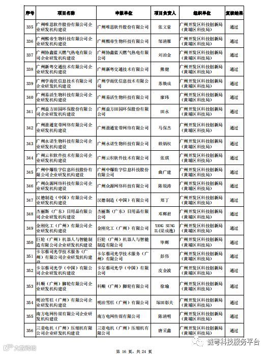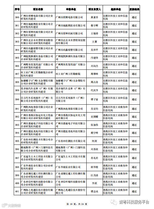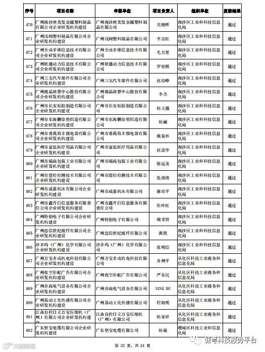 2017年广州市企业研究开发机构建设专题(第二批)项目复核结果公开