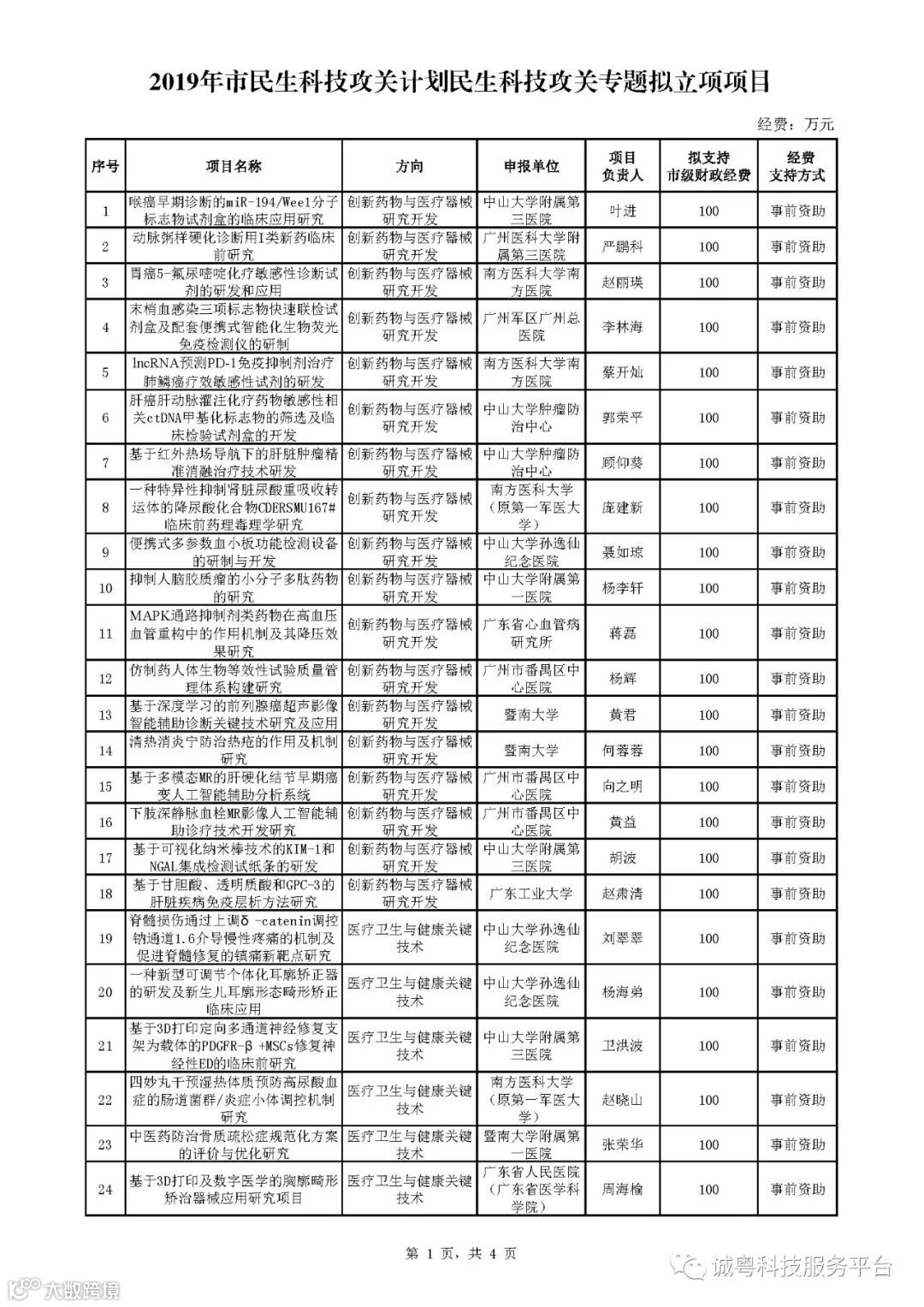 附件:2019年市民生科技攻关计划民生科技攻关专题拟立项项目.pdf
