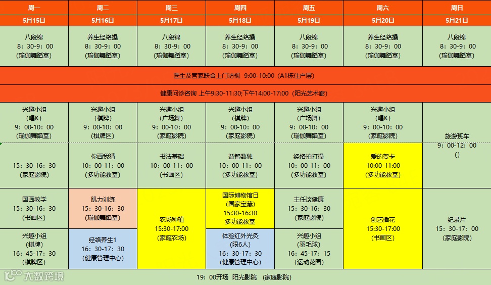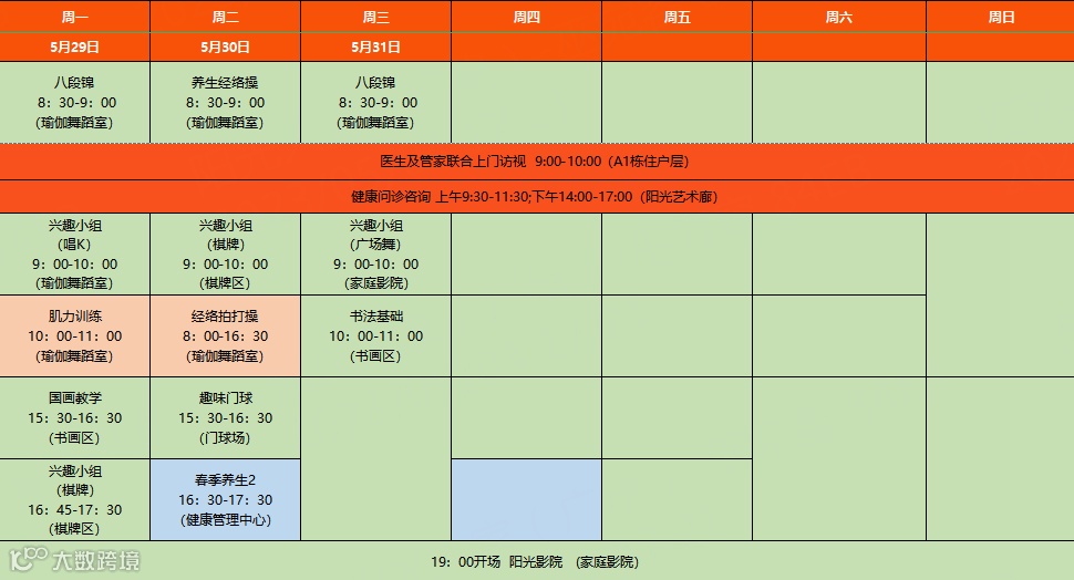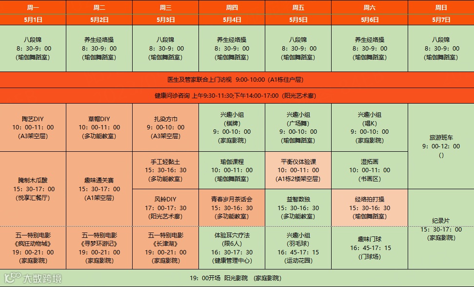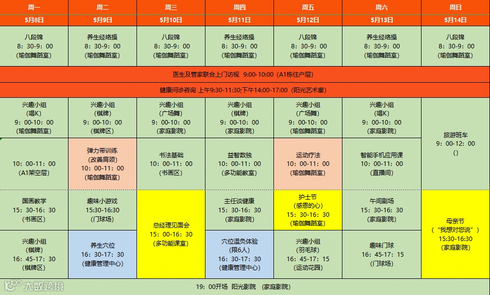 今日份阳光人家五月活动计划表上新了,本月有重磅活动等着家人们,浓情母亲节、爱的贺卡、创意插花、尊享生日会等等。