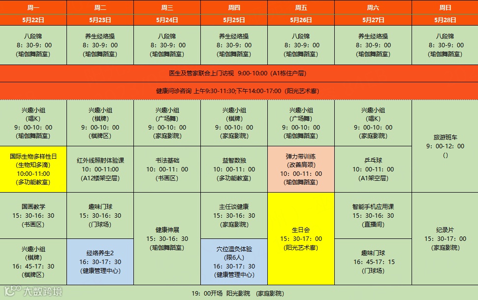 更有养生小课堂、各式养生操、各类兴趣小组、外出周边游玩等丰富多彩的课程文娱活动等您来体验,请随家宝看看!