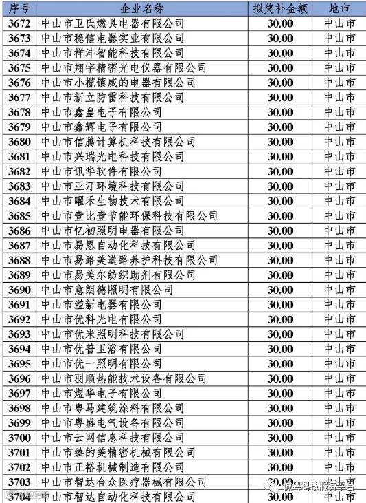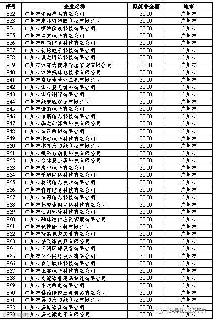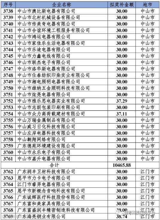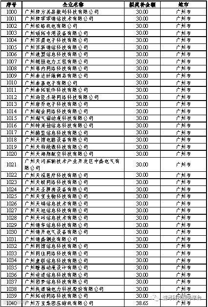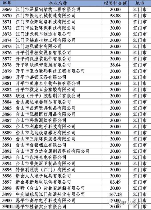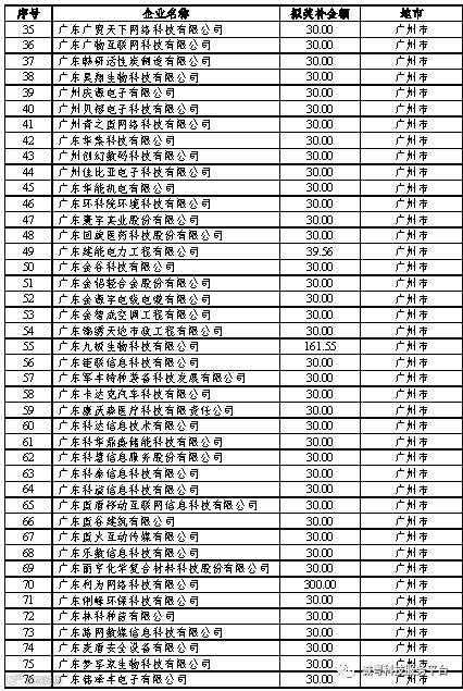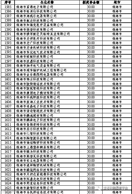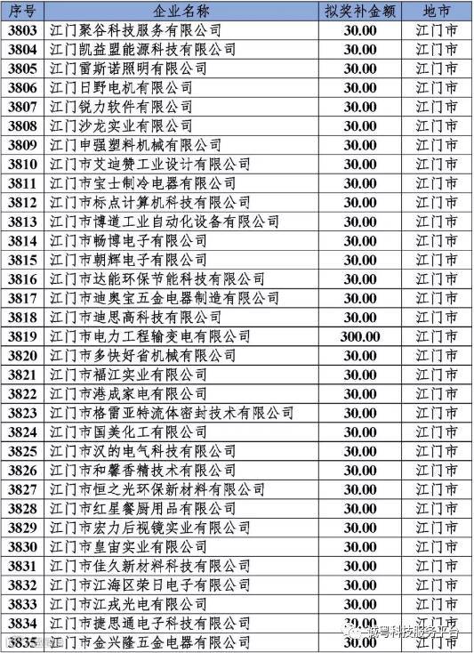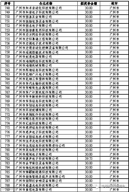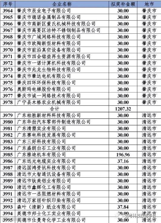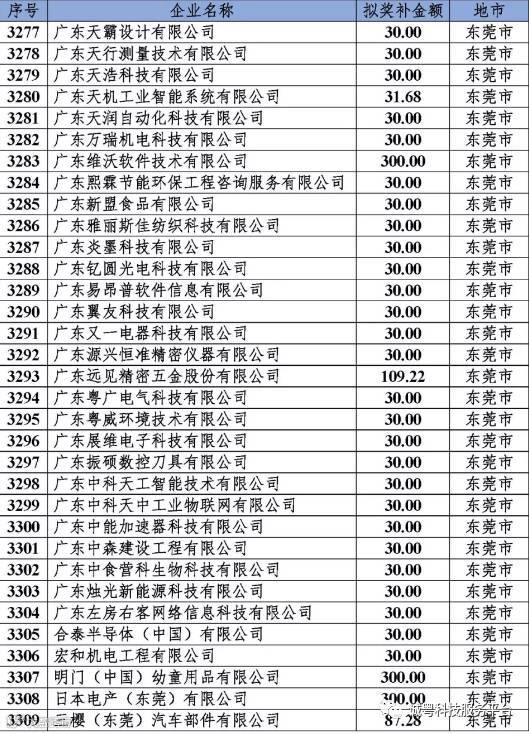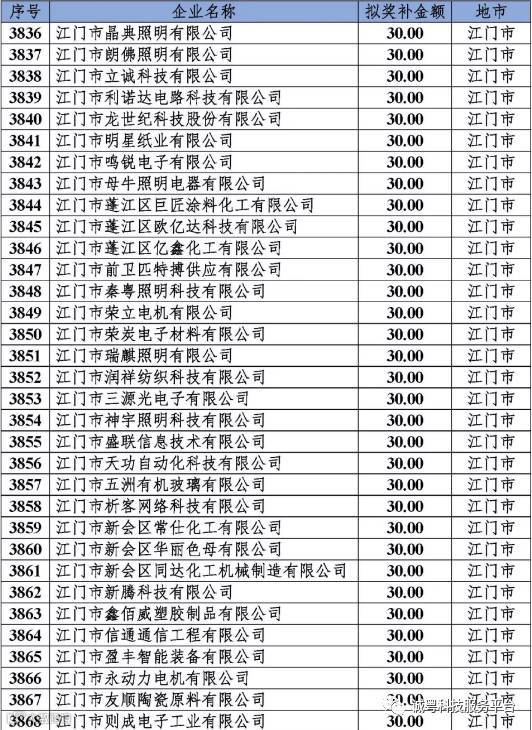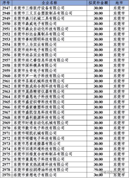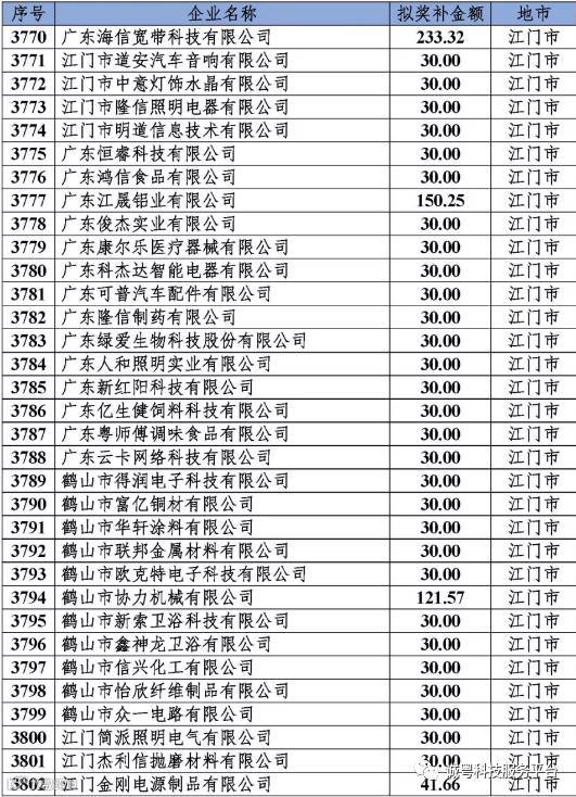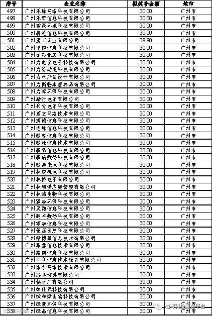 根据《广东省高新技术企业培育工作实施细则》(粤科函高字〔2016〕1737号)的有关规定,经企业申报、专家评审、各地市培育机构核对奖补金额等程序,现对奥戈恩(广州)泵业有限公司等4022家拟进入广东省2017年高新技术企业培育库的企业及奖补金额予以公示,公示期为5个工作日。