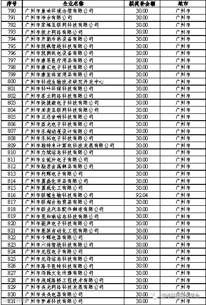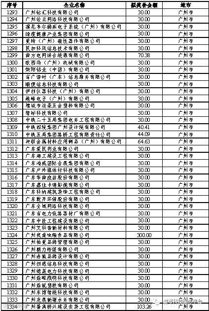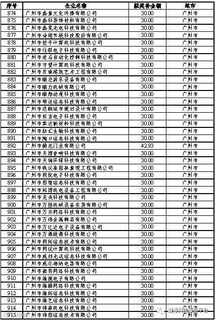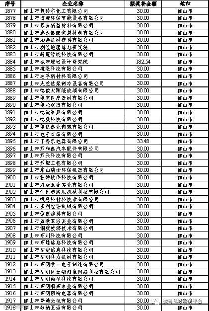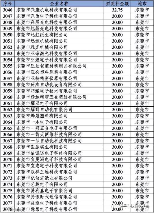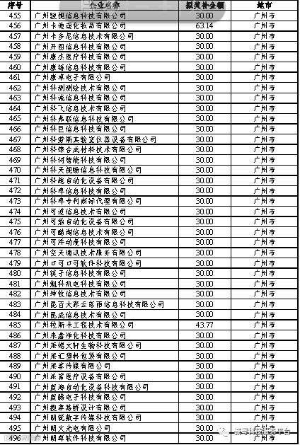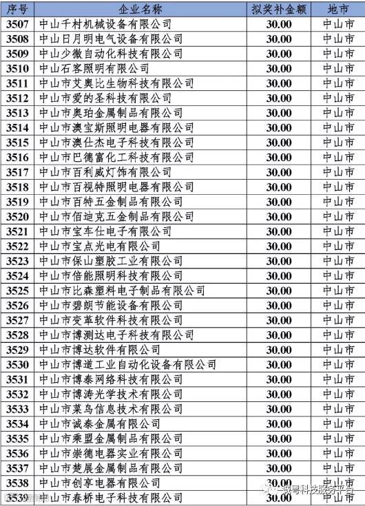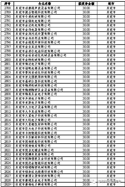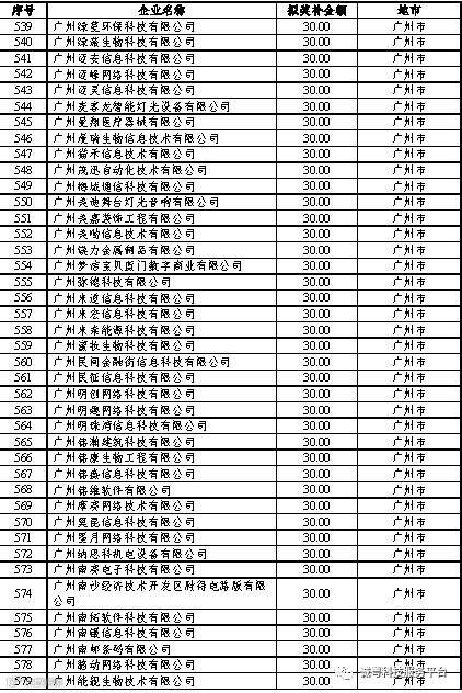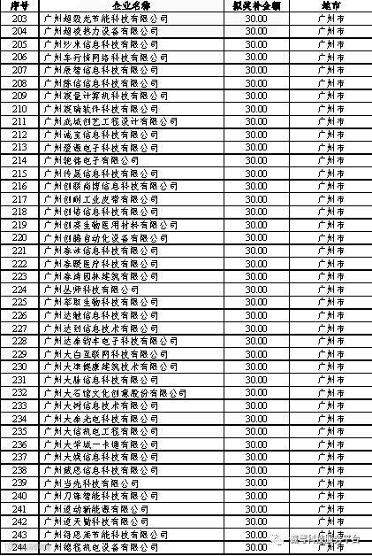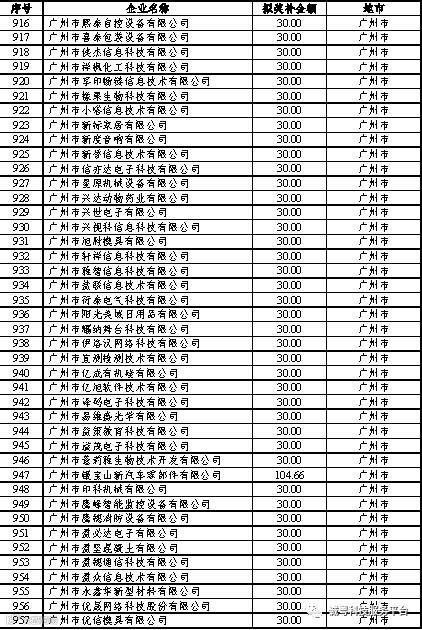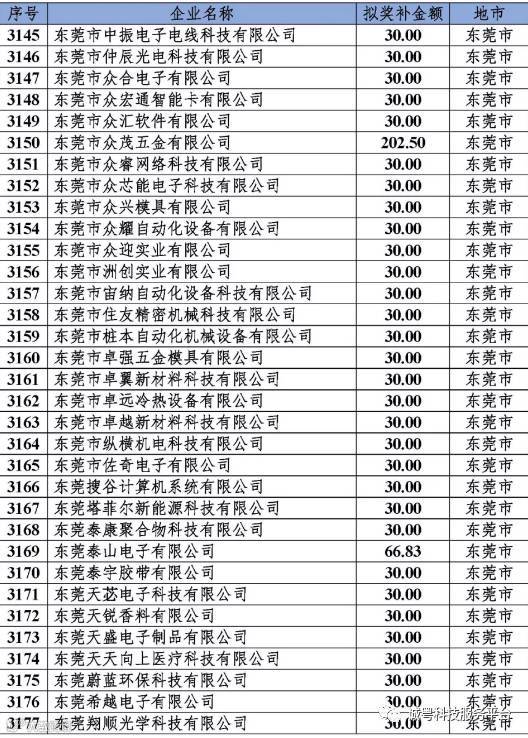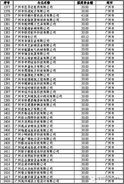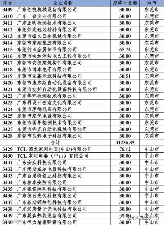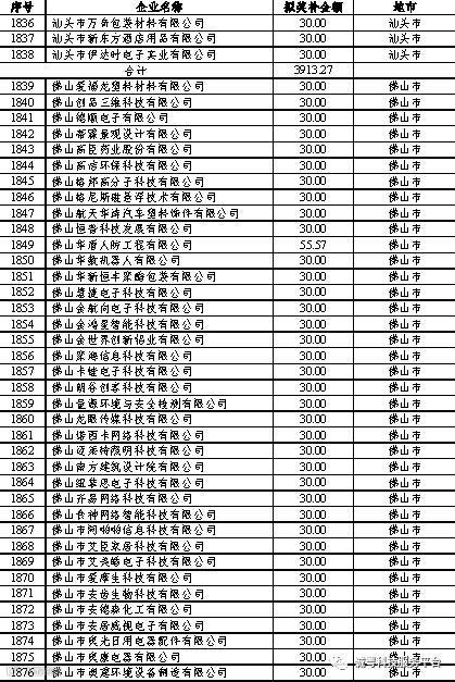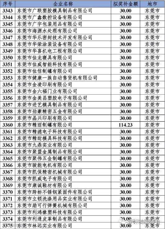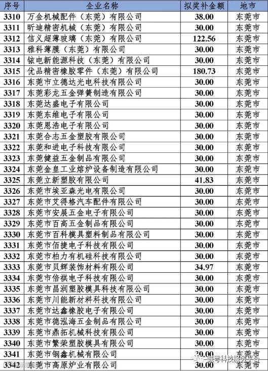 根据《广东省高新技术企业培育工作实施细则》(粤科函高字〔2016〕1737号)的有关规定,经企业申报、专家评审、各地市培育机构核对奖补金额等程序,现对奥戈恩(广州)泵业有限公司等4022家拟进入广东省2017年高新技术企业培育库的企业及奖补金额予以公示,公示期为5个工作日。