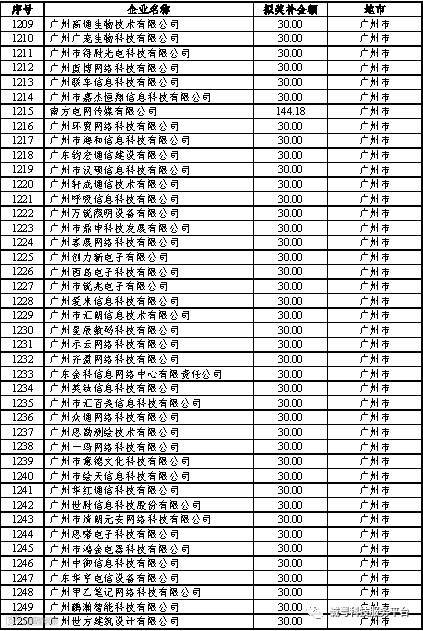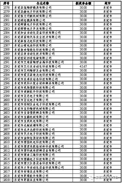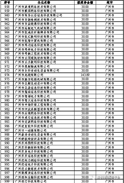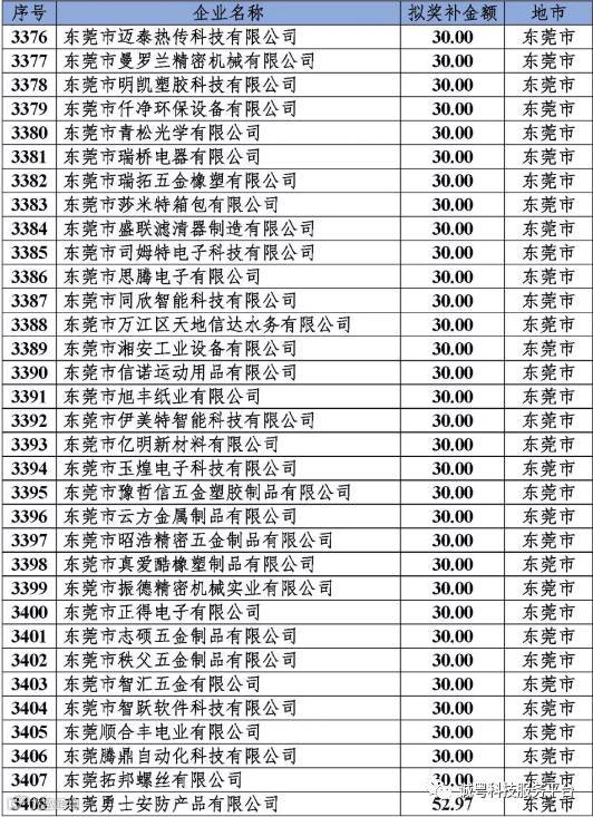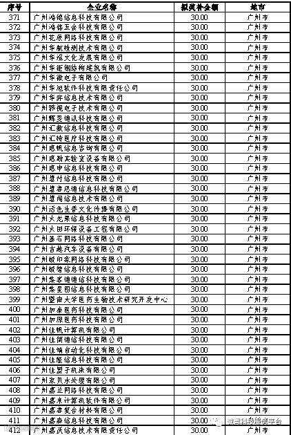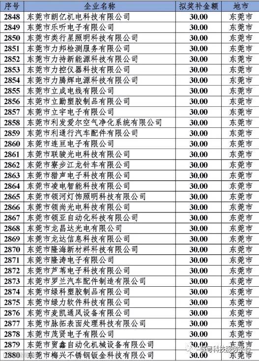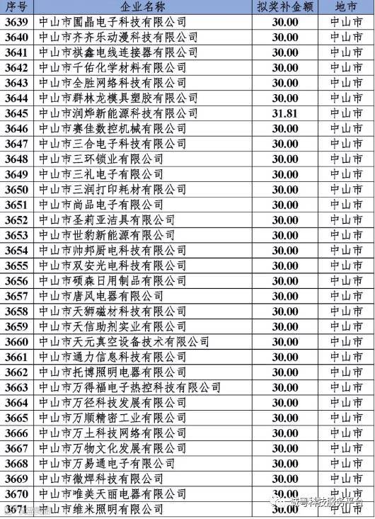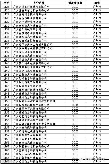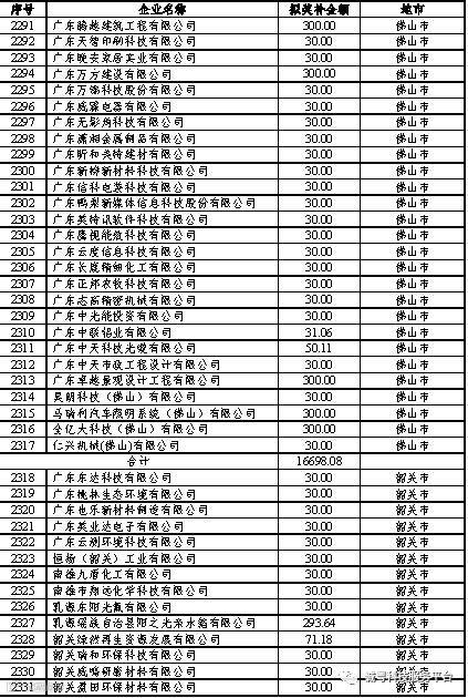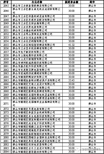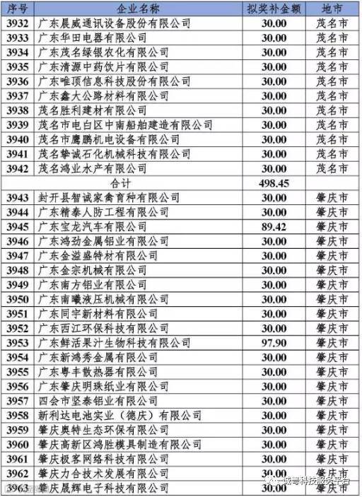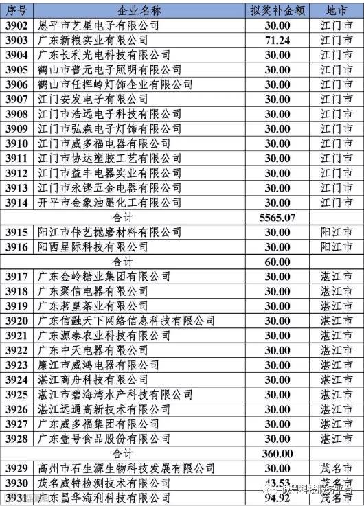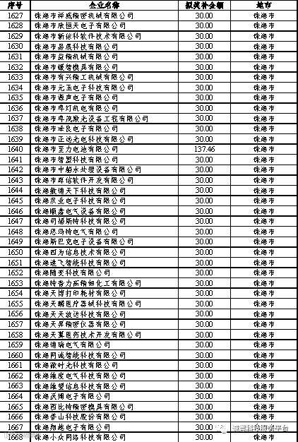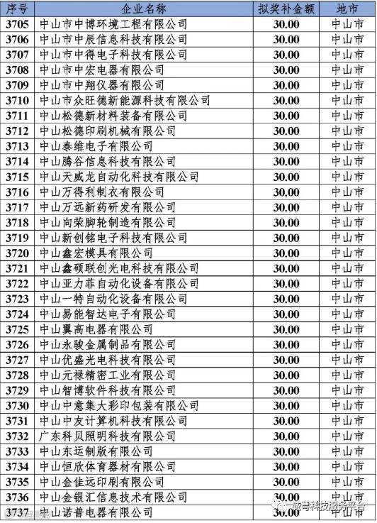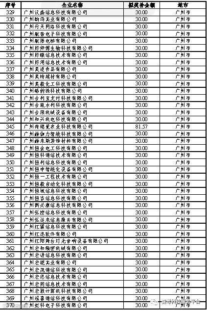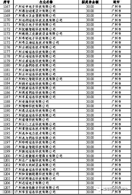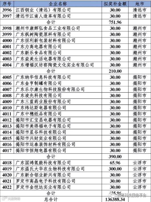 根据《广东省高新技术企业培育工作实施细则》(粤科函高字〔2016〕1737号)的有关规定,经企业申报、专家评审、各地市培育机构核对奖补金额等程序,现对奥戈恩(广州)泵业有限公司等4022家拟进入广东省2017年高新技术企业培育库的企业及奖补金额予以公示,公示期为5个工作日。