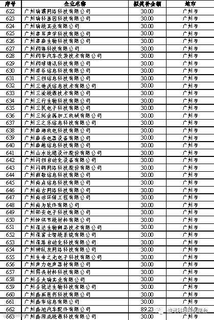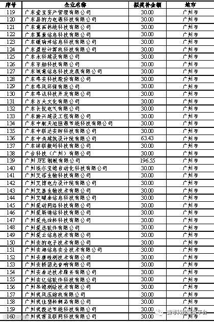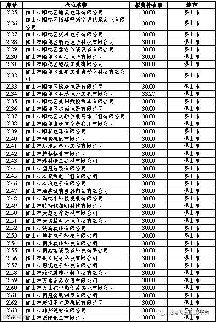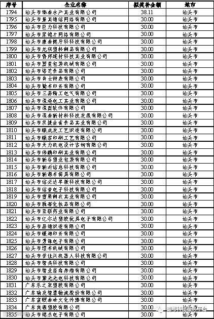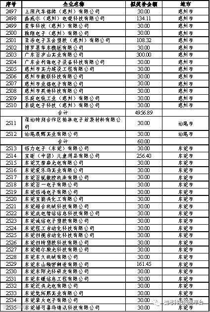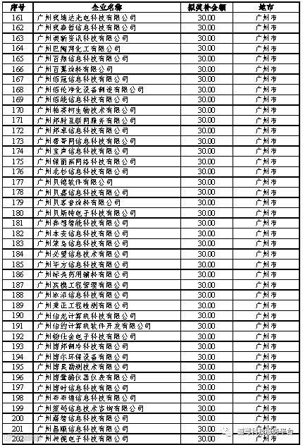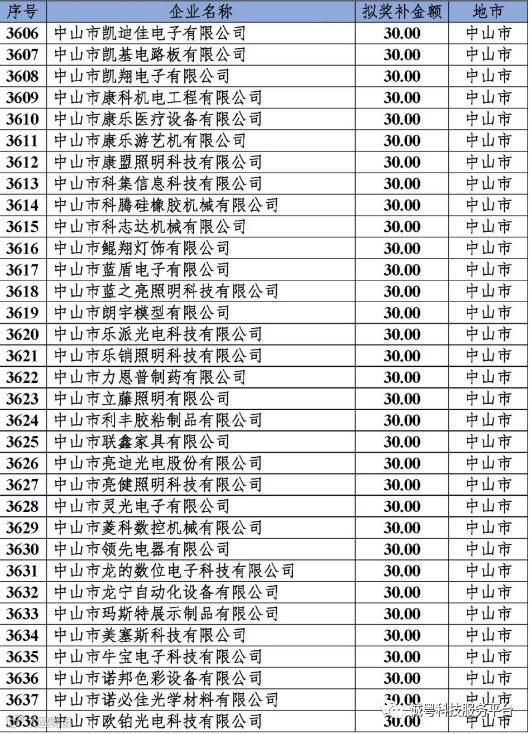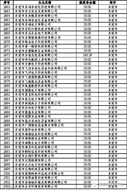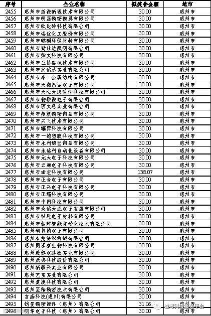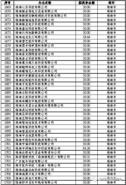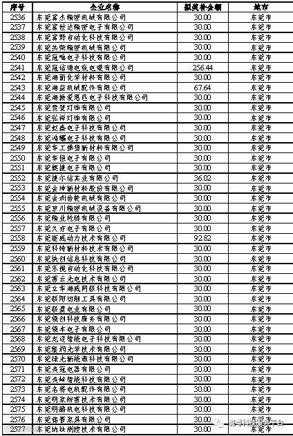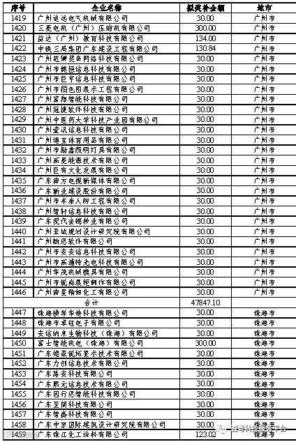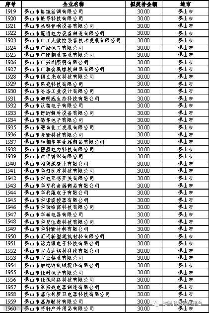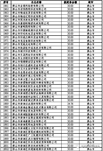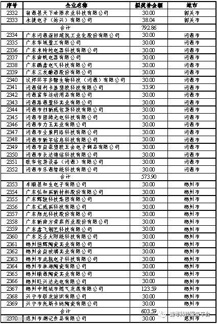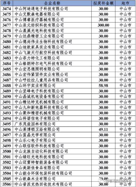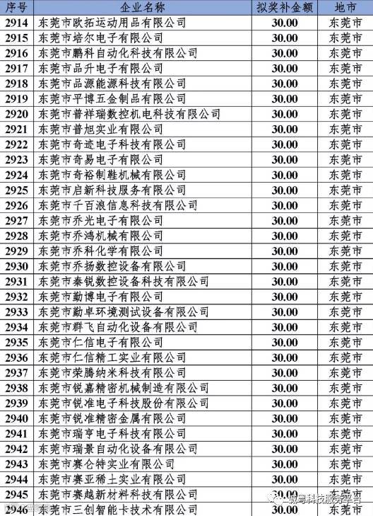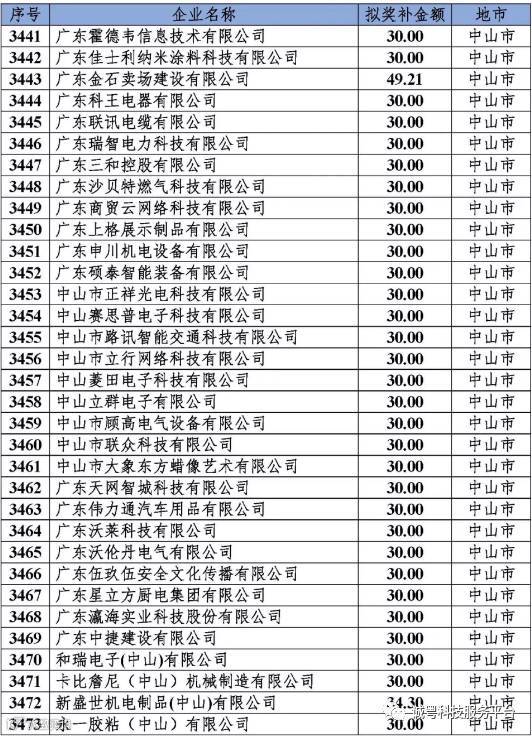 根据《广东省高新技术企业培育工作实施细则》(粤科函高字〔2016〕1737号)的有关规定,经企业申报、专家评审、各地市培育机构核对奖补金额等程序,现对奥戈恩(广州)泵业有限公司等4022家拟进入广东省2017年高新技术企业培育库的企业及奖补金额予以公示,公示期为5个工作日。