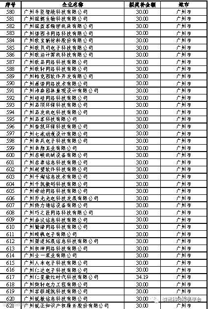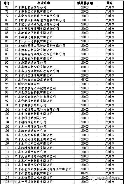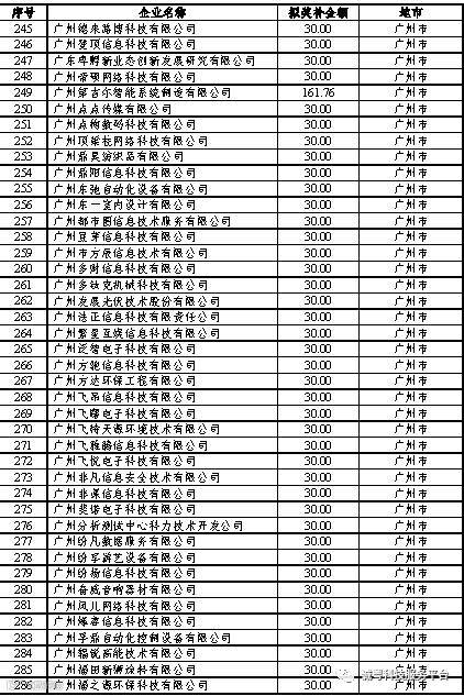 广东省2017年高新技术企业培育库拟入库企业